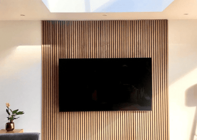 Los paneles de 12,6cm de ancho se ensamblan fácilmente unos con otros gracias al machiembrado, de este modo no habrá uniones visibles, quedará toda la superficie uniforme. Podremos unir todos los paneles que queramos de 12,6cm hasta llegar a cubrir todo el ancho deseado.